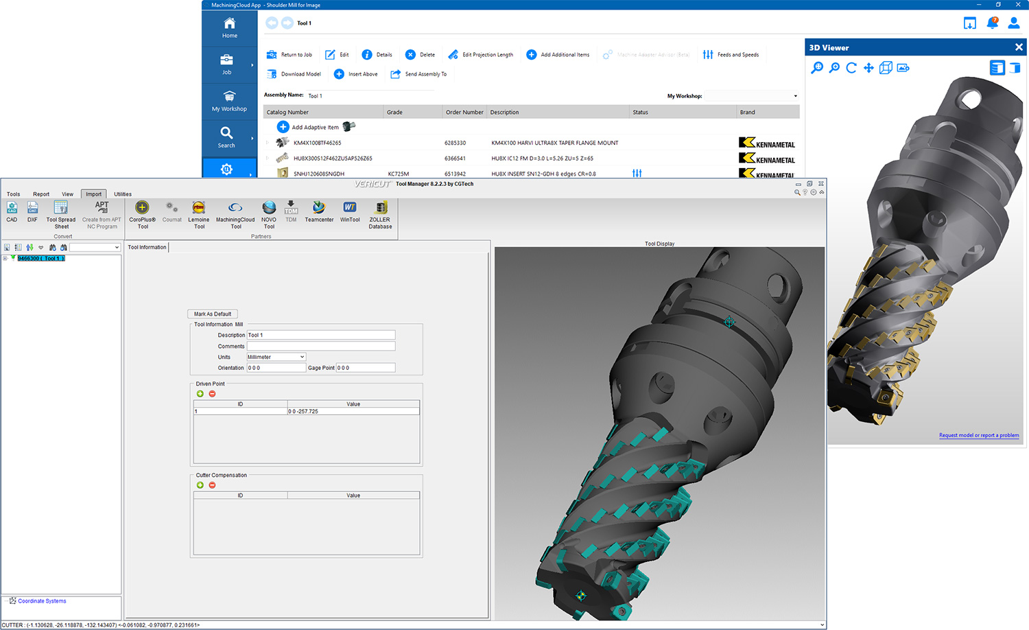 MachiningCloud makes it simple to build and download 3D tool models that can be quickly transferred to VERICUT using the MachiningCloud Interface. Read in the 3D tool assemblies built in MachiningCloud along with cutting data from the tooling suppliers to use in VERICUT’s optimization software to reduce NC program run times and lengthen tool life.