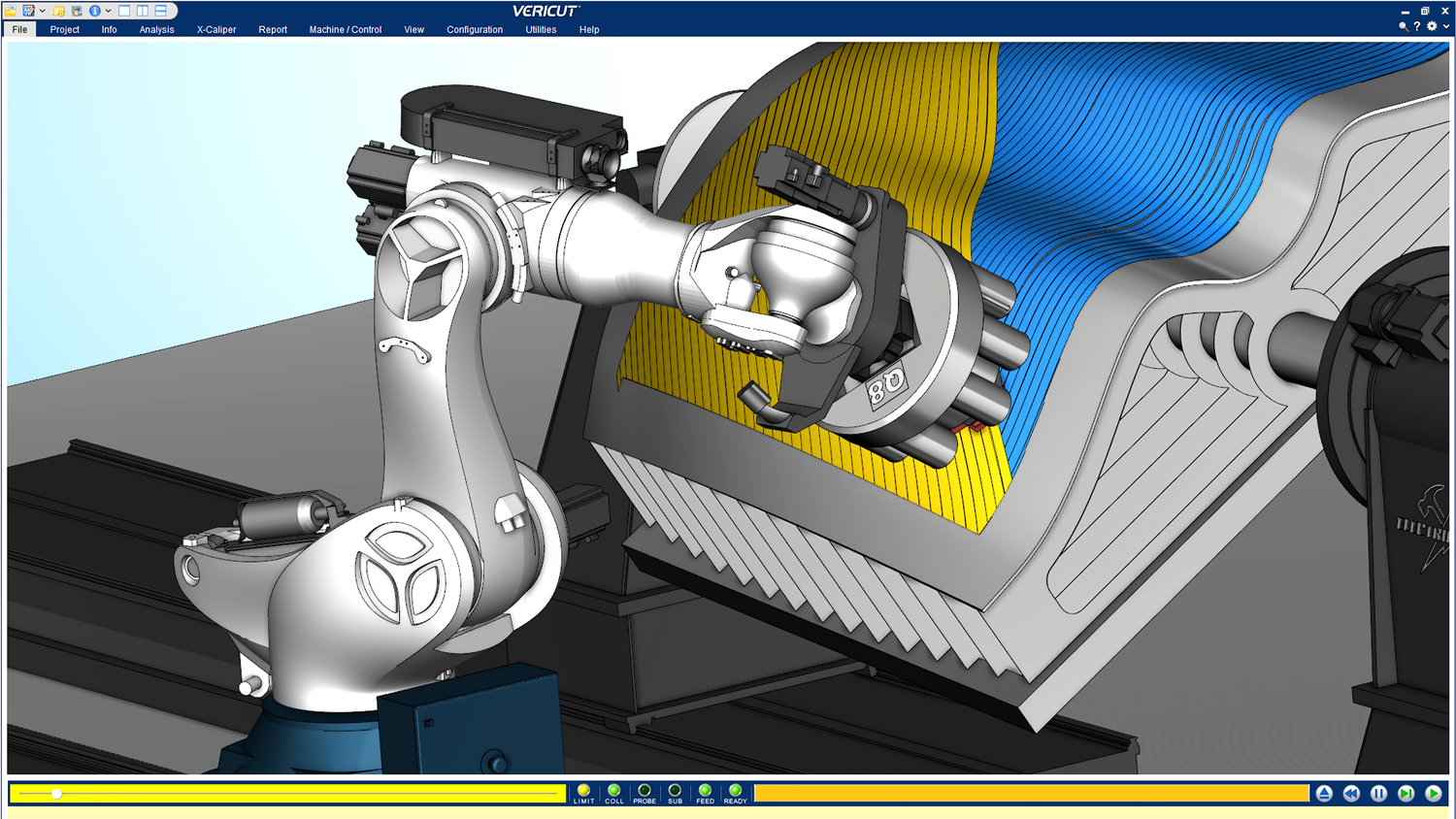 For manufacturers applying robotic automation to cutting and trimming, drilling and fastening, as well as fiber placement, VERICUT simulates 6-axis articulated-arm robot motion from leading robot machine builders including Fanuc, KUKA, ABB, Kawasaki, Motorman and others. VERICUT also supports robots that have additional ‘external’ axes such as those mounted on a linear rail.