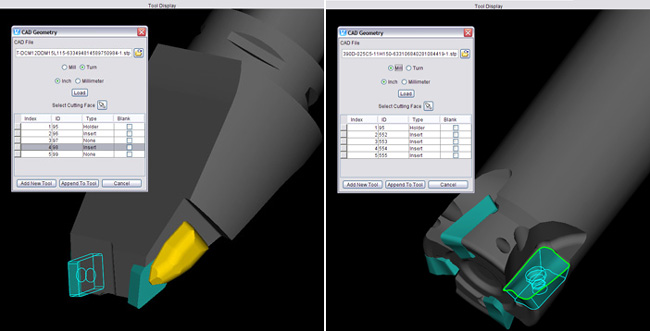 To further simplify creating your VERICUT tool library, you can now import CAD solid models of inserts and holders into VERICUT. The new feature added to the Tool Manager displays the CAD Geometry window that allows you to identify which parts of the CAD model file correspond with holders, cutters, or inserts. Currently only CATV5 and STEP models are supported.* __