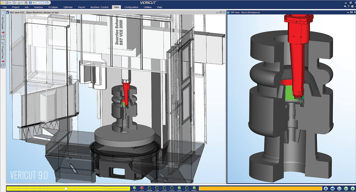 VERICUT renders with realistic and crisper views of cutting processes and machines. Drastic improvements in the view environment - rotate or zoom while cutting, seamlessly switch view types or layouts, and change model translucency, colors or other appearance properties at any time. New flexibility to use major functions (like Section, X-Caliper and AUTO-DIFF) in any view helps programmers get their jobs done faster.