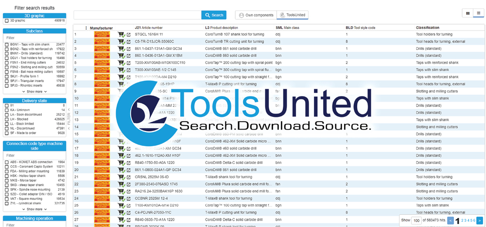 The ToolsUnited interface is the most recent addition to VERICUT’s cutting tool connectivity options, and provides access to tool and cutting data from over 40 tooling vendors. VERICUT users can directly read 3D tool assemblies and their cutting data, and use them in VERICUT simulation and optimization.